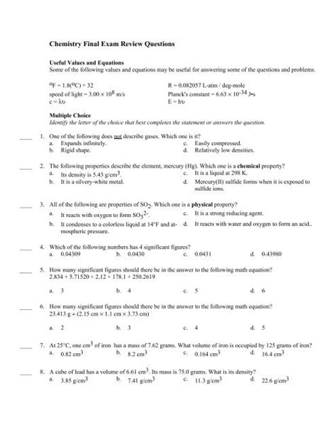 Download 2nd Semester Chemistry Final Exam Review Answers Kindle Editon