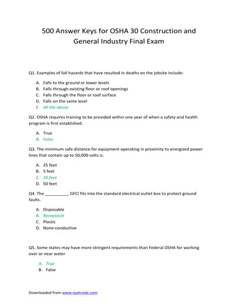 Download Answer Key For Osha Construction 500 Test Kindle Editon